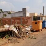 Ler maisRestos de construção, como telhas, madeiras e muitos outros itens vem sendo deixados ao lado dos contentores pela população em